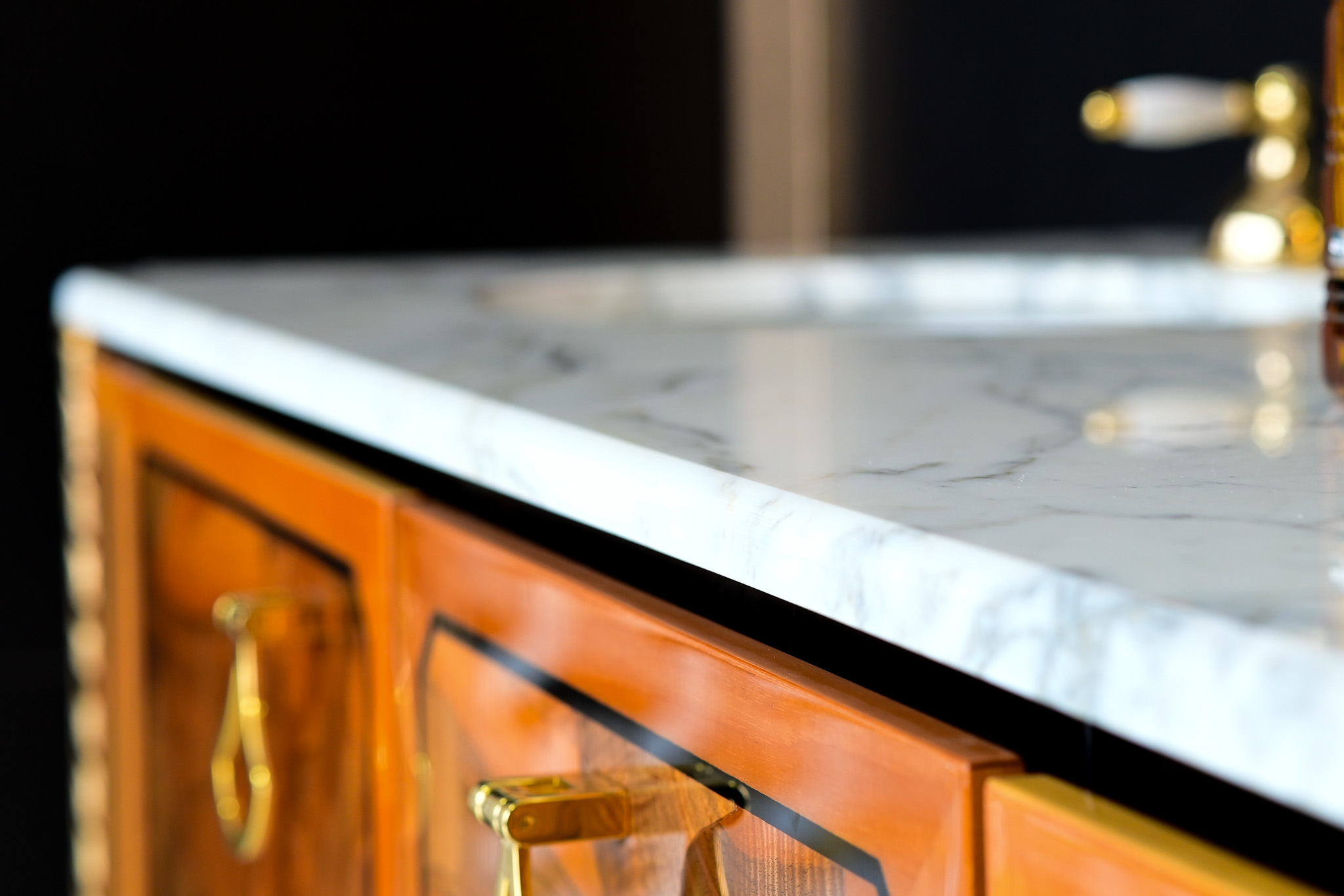 Deze badkamer setting biedt het beste van twee werelden: een vleugje vintage glamour gecombineerd met moderne functionaliteit. Met zijn gouden accenten, klassieke kleurenschema en tijdloze ontwerp straalt Underground een unieke elegantie uit die elke badkamer transformeert tot een oase van stijl en comfort. Bezoek onze showroom om onze producten te bekijken!